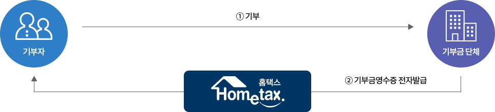 - 기부금 단체에서 국세청 홈택스를 통해 기부자에게 ② 기부금영수증 전자발급