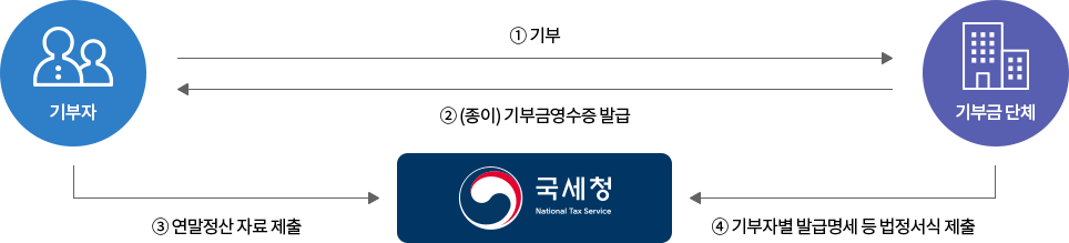 - 기부자가 국세청에 ③ 연말정산 자료제출 →