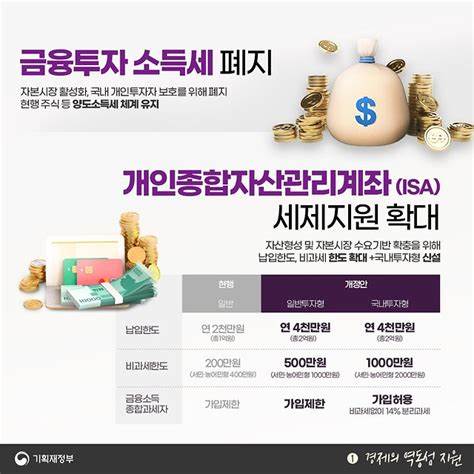 ※ 이번 세법 개정은 투자자 보호, 출산 장려, 부동산 정책 조정, 기업 주주환원 강화 등을 중심으로 이루어졌습니다. 특히 금융 투자소득세 폐지와 가상자산 과세 유예는 투자자들에게 큰 영향을 미칠 것입니다. 자세한 내용은 국세청 홈페이지 또는 세무 전문가와 상담을 통해 확인하시기 바랍니다.